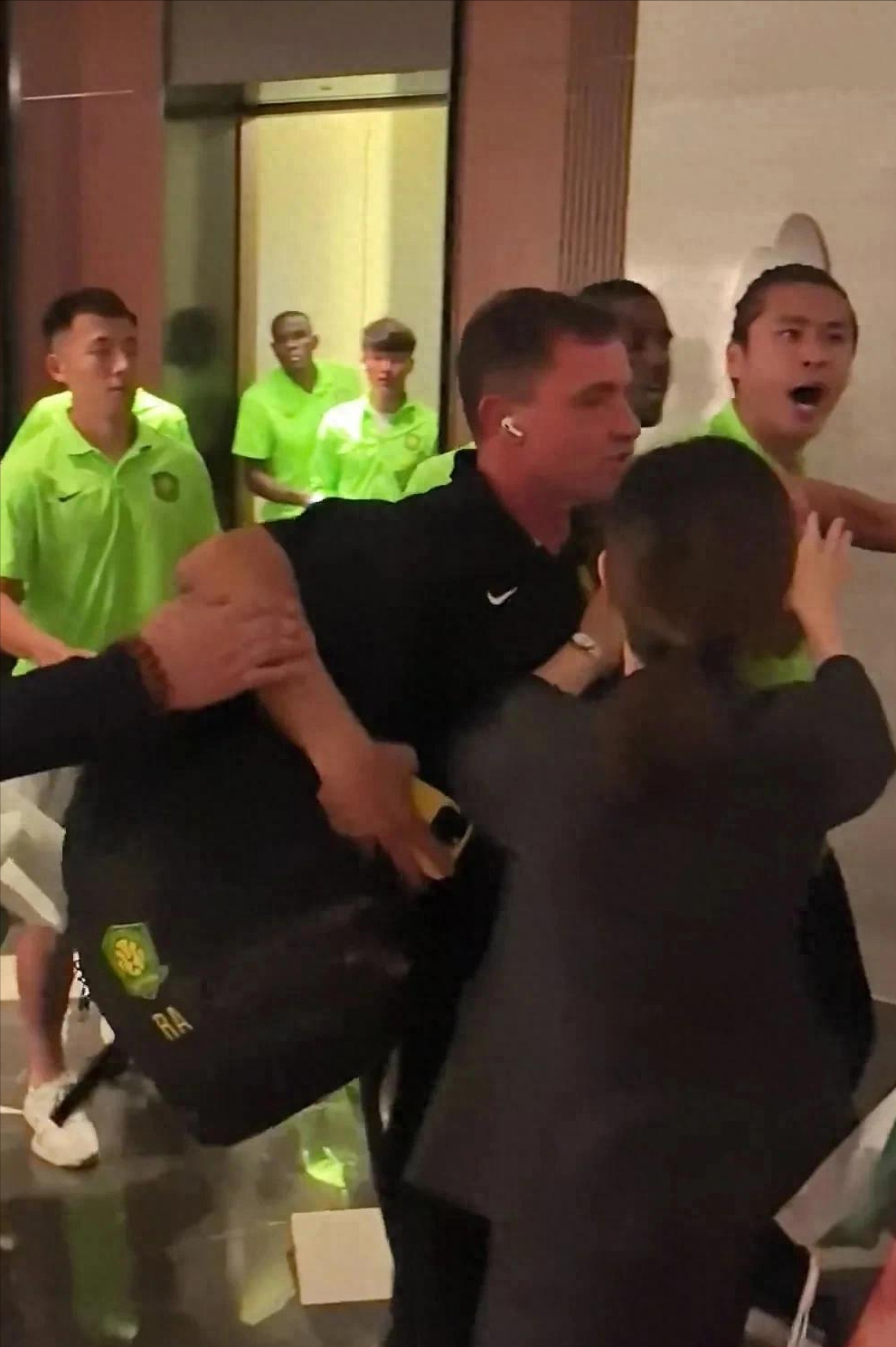 当时,在酒店电梯口有远征球迷高喊“你出来”,随后王刚和张玉宁从即将上行的电梯中冲出,情绪激动地回应称:“我们不想踢好吗?我们怎么不想踢好?有什么好哔哔的!”