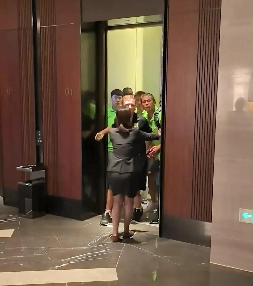 最终在球队及酒店工作人员的劝阻下,双方才逐渐冷静并返回电梯。直到这儿,这位小姐姐才擦了下汗。球队刚刚大比分输球,球迷有情绪那是再正常不过的了,而球员在场上的大比分输球,也是经历了非常痛苦的折磨的,所以笔者觉得越是这种时候呢,球员就更应该态度谦逊一点,而不是去搞这种事情,幸亏有这个小姐姐。